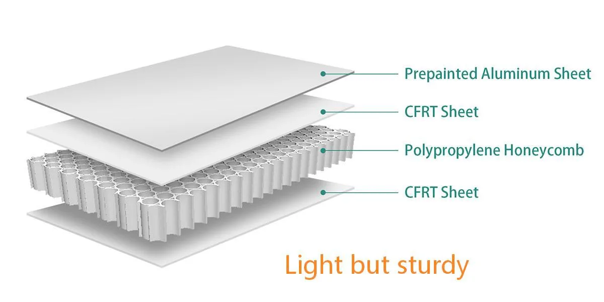 ●벌집 솔루션: 초경량화. 당사의 복합 패널은 강철과 동일하거나 더 높은 강도를 제공합니다. 체중을 30~50% 줄이면서.
